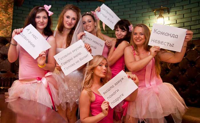 Этот самый весёлый и танцевальный. Конечно, требует соответствующих костюмов для подружек невесты, но это того стоит. Подружкам невесты нужно будет встретить жениха и его свиту с шумными танцами и песнями, при этом, не забывая требовать позолотить ручку. Жениха нужно попросить зажечь под веселую музыку, нагадать ему счастливой семейной жизни, конечно за определённую плату, ну а потом можно пропустить и к невесте!